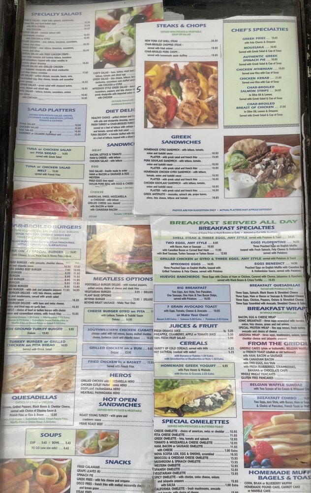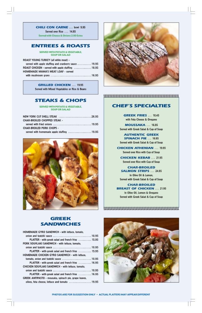 Entrees Roasts, Steaks Chops, Greek Sandwiches, Chef Specialties