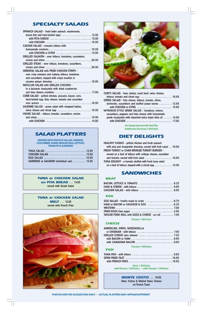 Specialty Salads, Salad Platters, Diet Delights, Sandwiches